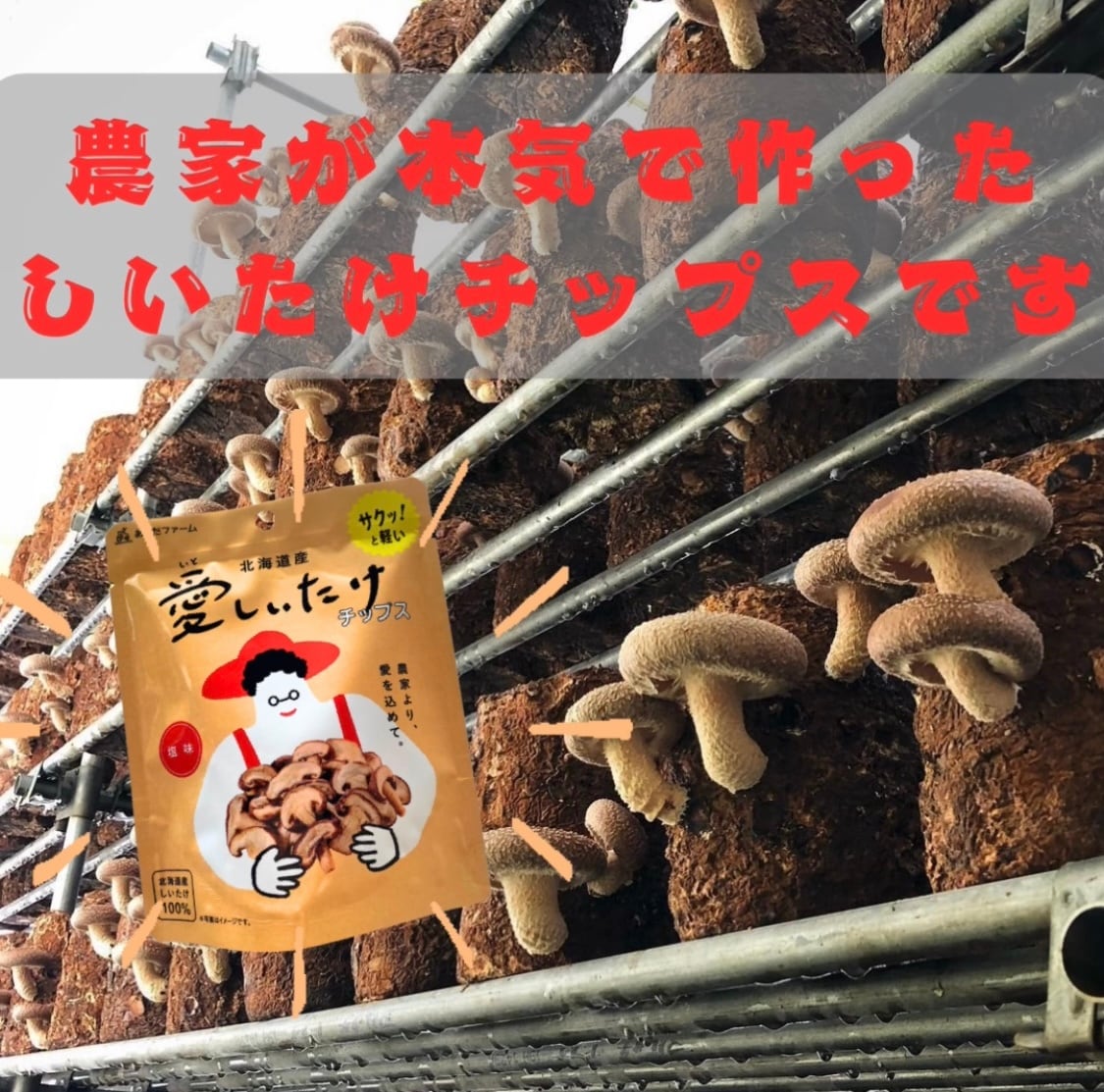 農家が本気で作った「愛(いと)しいたけチップス」です。